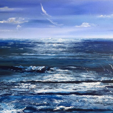 I live by the coast and the sea is part of me. I am continually drawn to painting it in many forms, and exploring themes of movement and journey